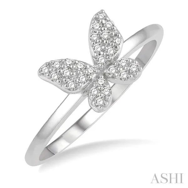 (256) 764-40131/6 Ctw Butterfly Motif Round Cut Diamond Petite Fashion Ring in 14K White Gold