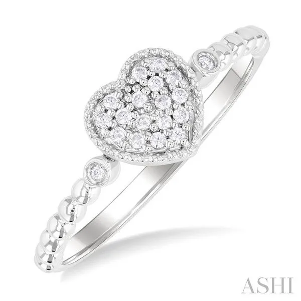(256) 764-40131/8 Ctw Petite Bead Shank Heart Motif Round Cut Diamond Fashion Ring in 10K White Gold
