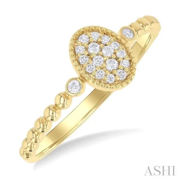 (256) 764-40131/8 Ctw Petite Bead Shank Oval Center Round Cut Diamond Fashion Ring in 10K Yellow Gold