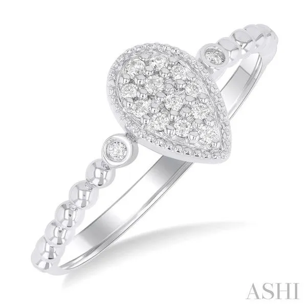 (256) 764-40131/8 Ctw Petite Bead Shank Pear Shape Center Round Cut Diamond Fashion Ring in 10K White Gold