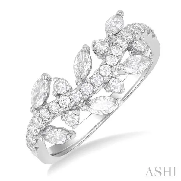 (256) 764-40133/4 Ctw Curved Center Marquise and Round Cut Diamond Fashion Band in 14K White Gold