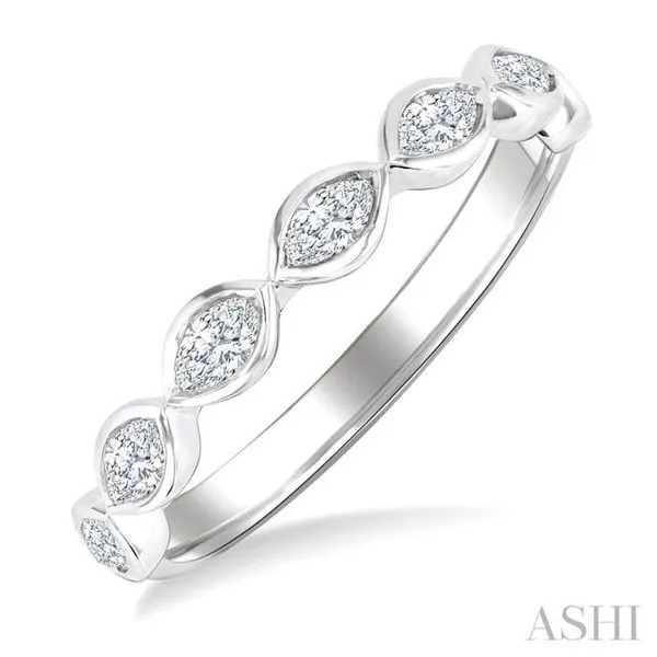 (256) 764-40133/4 Ctw East-West Set Marquise Cut Bezel Diamond Stackable Fashion Band in 14K White Gold