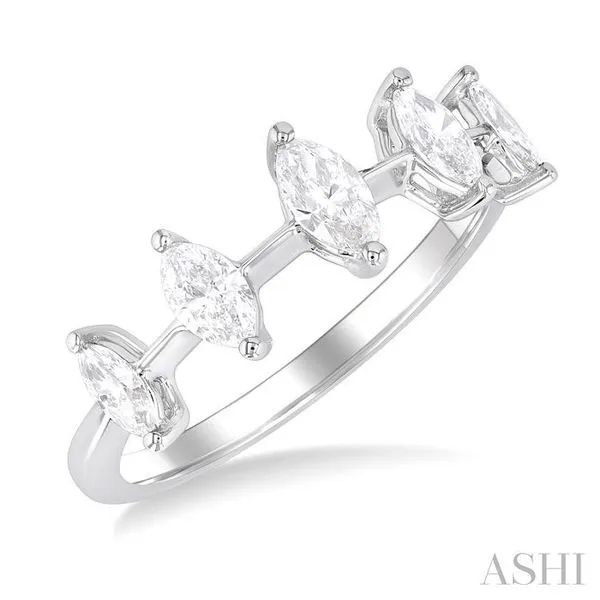 (256) 764-40133/4 Ctw Marquise Cut Diamond Half Eternity 5-Stone Fashion Band in 14K White Gold