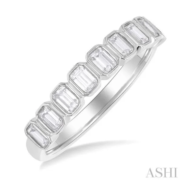(256) 764-40133/4 Ctw North-South Bezel Set Emerald Cut Diamond Fashion Band in 14K White Gold