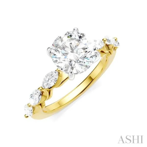 (256) 764-40133/4 Ctw Round Shape Marquise and Round Cut Diamond Semi-Mount Engagement Ring in 14K Yellow and White Gold