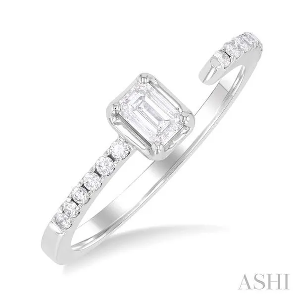 (256) 764-40133/8 Ctw Emerald and Round Cut Diamond Fashion Open Ring in 14K White Gold