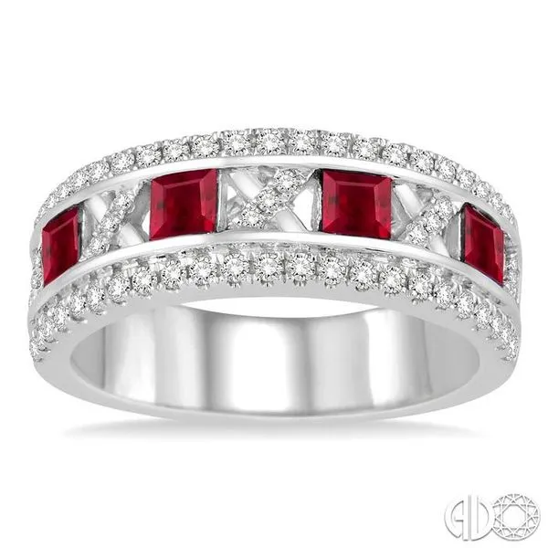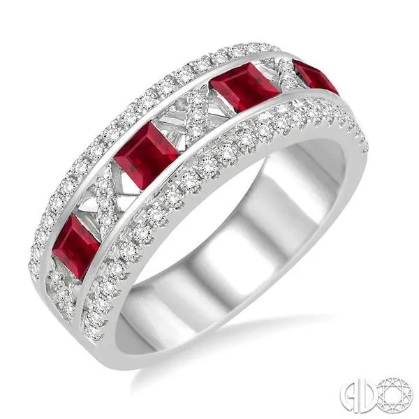 3x3 MM Princess Cut Ruby and 3/8 Ctw Round Cut Diamond Precious Ring in 14K White Gold Image 2 Grogan Jewelers Florence, AL