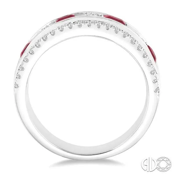 3x3 MM Princess Cut Ruby and 3/8 Ctw Round Cut Diamond Precious Ring in 14K White Gold Image 4 Grogan Jewelers Florence, AL