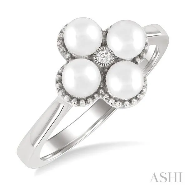 (256) 764-40134 MM Clover Cultured Pearl and 1/50 Ctw Round Cut Diamond Fashion Ring in 10K White Gold