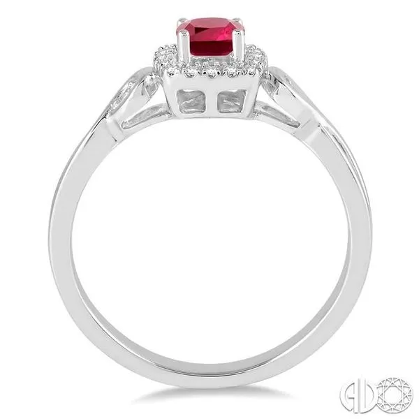 (256) 764-40134x4 MM Cushion Cut Ruby and 1/10 Ctw Round Cut Diamond Ring in 14K White Gold