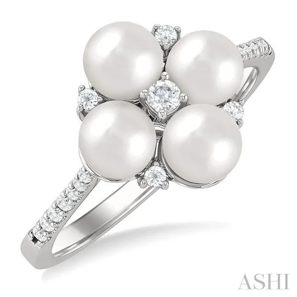 (256) 764-40135x5 MM Round Shape Floral Cultured Pearls and 1/6 Ctw Round Cut Diamond Fashion Ring in 10K White Gold