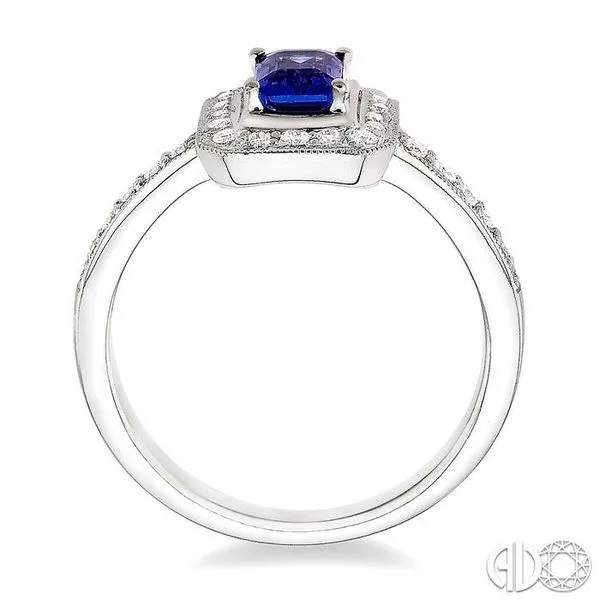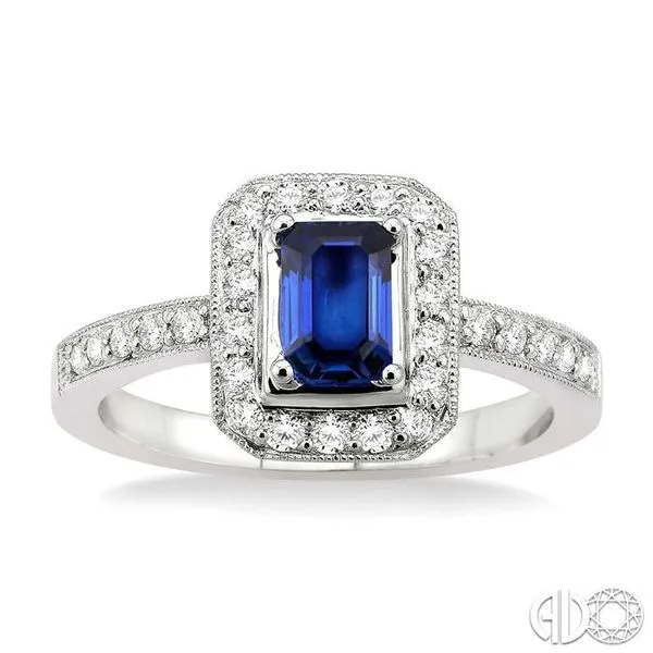 (256) 764-40136x4MM Octagon Cut Sapphire and 1/3 Ctw Round Cut Diamond Ring in 18K White Gold