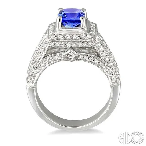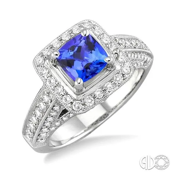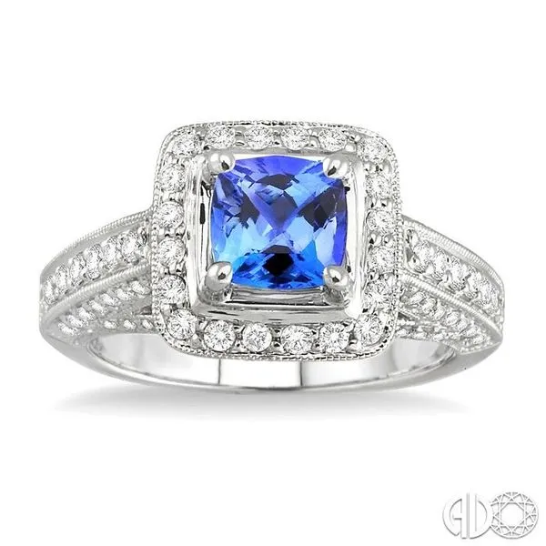 (256) 764-40136x6 mm Cushion Cut Tanzanite and 1 Ctw Round Cut Diamond Ring in 14K White Gold
