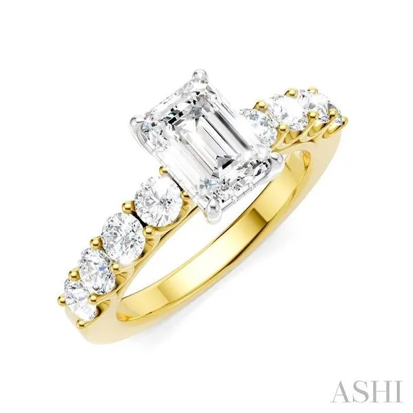 (256) 764-40137/8 Ctw Emerald Shape Round Cut Diamond Semi-Mount Engagement Ring in 14K Yellow and White Gold