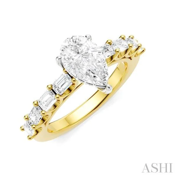 (256) 764-40137/8 Ctw Pear Shape Emerald and Round Cut Diamond Semi-Mount Engagement Ring in 14K Yellow and White Gold