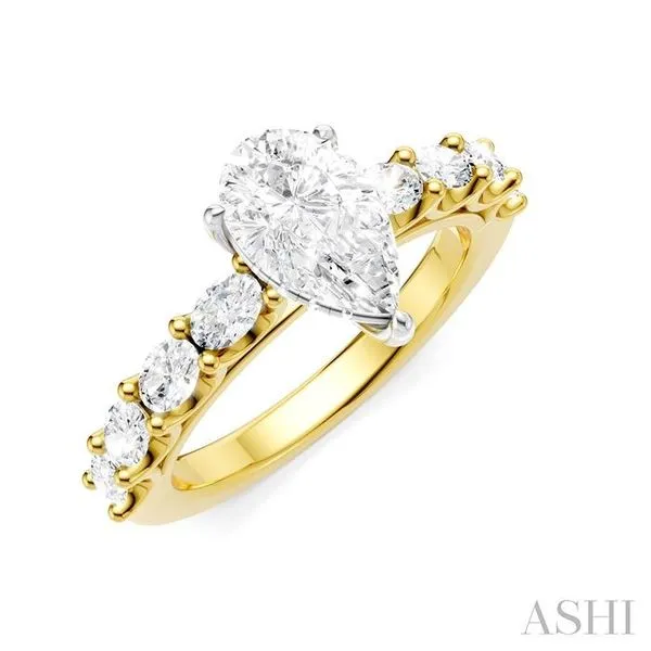 (256) 764-40137/8 Ctw Pear Shape Oval and Round Cut Diamond Semi-Mount Engagement Ring in 14K Yellow and White Gold