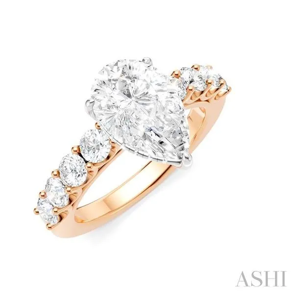 (256) 764-40137/8 Ctw Pear Shape Round Cut Diamond Semi-Mount Engagement Ring in 14K Rose and White Gold