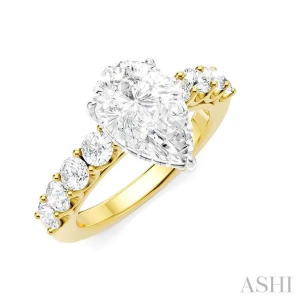 (256) 764-40137/8 Ctw Pear Shape Round Cut Diamond Semi-Mount Engagement Ring in 14K Yellow and White Gold