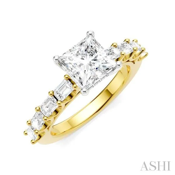(256) 764-40137/8 Ctw Princess Shape Emerald and Round Cut Diamond Semi-Mount Engagement Ring in 14K Yellow and White Gold