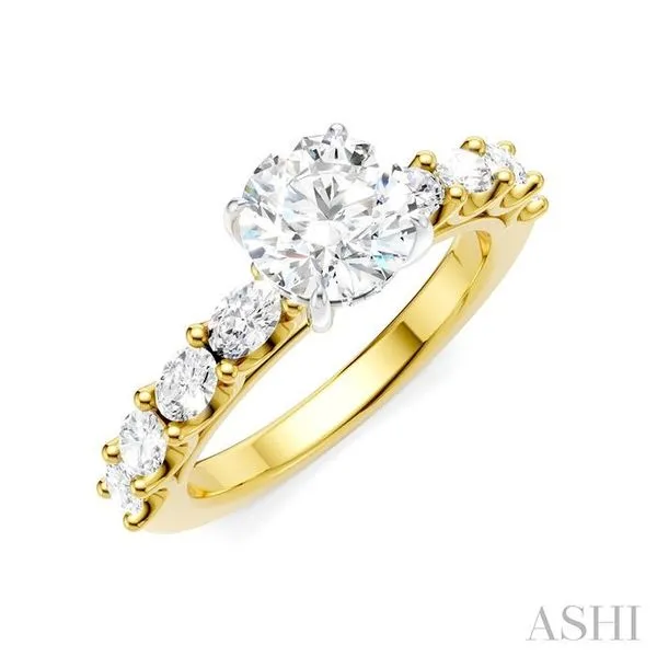 (256) 764-40137/8 Ctw Round Shape Oval and Round Cut Diamond Semi-Mount Engagement Ring in 14K Yellow and White Gold