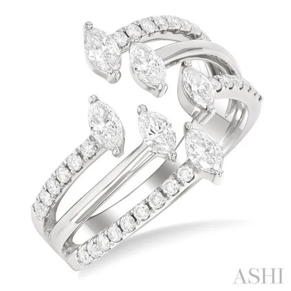 (256) 764-40137/8 Ctw Three-Way Split Marquise and Round Cut Diamond Fashion Open Ring in 14K White Gold
