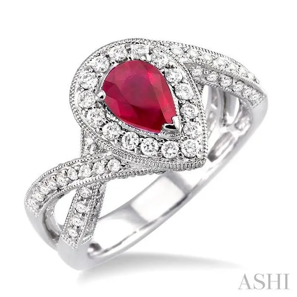 (256) 764-40137x5mm Pear Shape Ruby and 3/4 Ctw Round Cut Diamond Ring in 14K White Gold