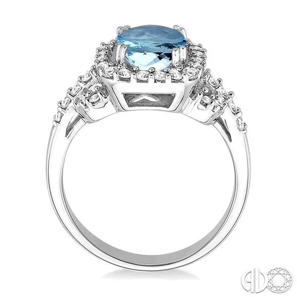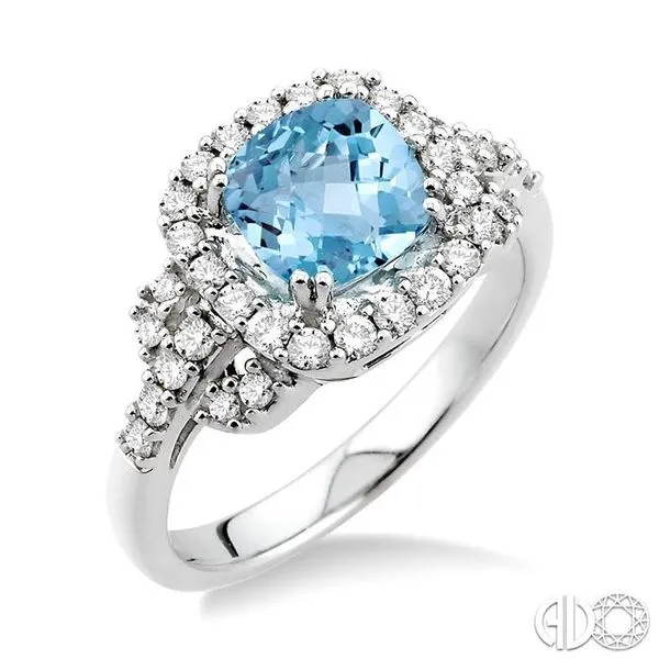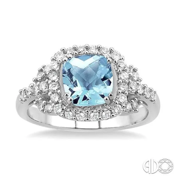 7x7mm Cushion Cut Aquamarine and 1/2 Ctw Round Cut Diamond Ring in 14K White Gold Image 2 Grogan Jewelers Florence, AL