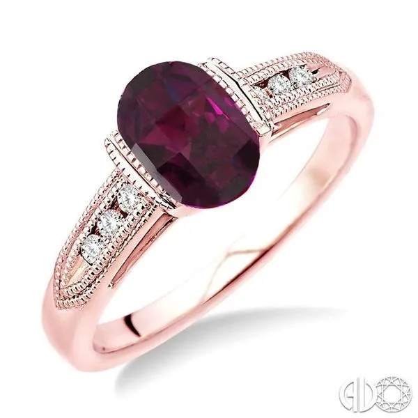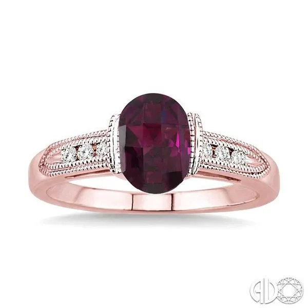 (256) 764-40138x6 MM Oval Shape Rhodolite Garnet and 1/10 Ctw Diamond Ring in 14K Rose Gold