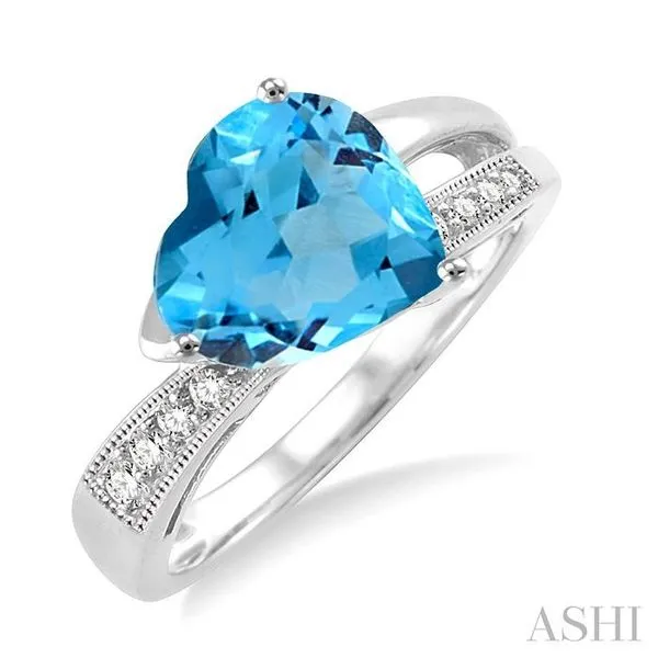 (256) 764-40138x8 mm Heart Shape Blue Topaz and 1/20 ctw Single Cut Diamond Ring in Sterling Silver