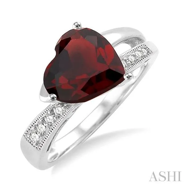 (256) 764-40138x8 mm Heart Shape Garnet and 1/20 ctw Single Cut Diamond Ring in Sterling Silver