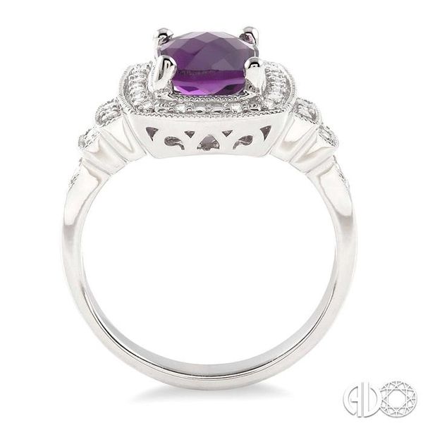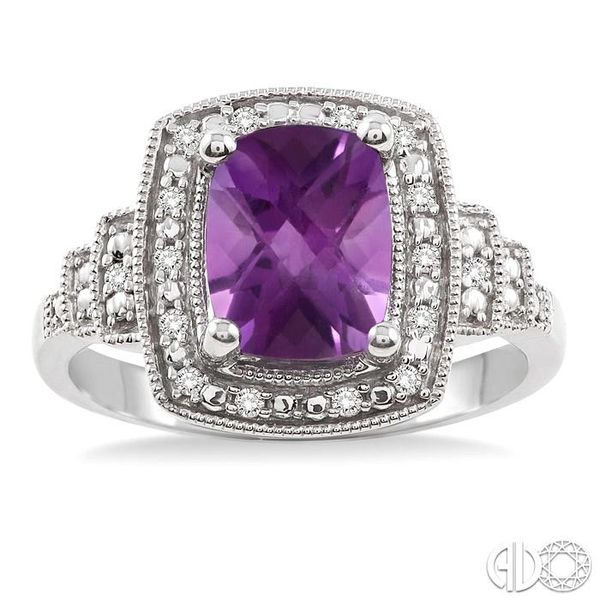 (256) 764-40139x7 MM Cushion Shape Amethyst and 1/10 Ctw Single Cut Diamond Ring in Sterling Silver