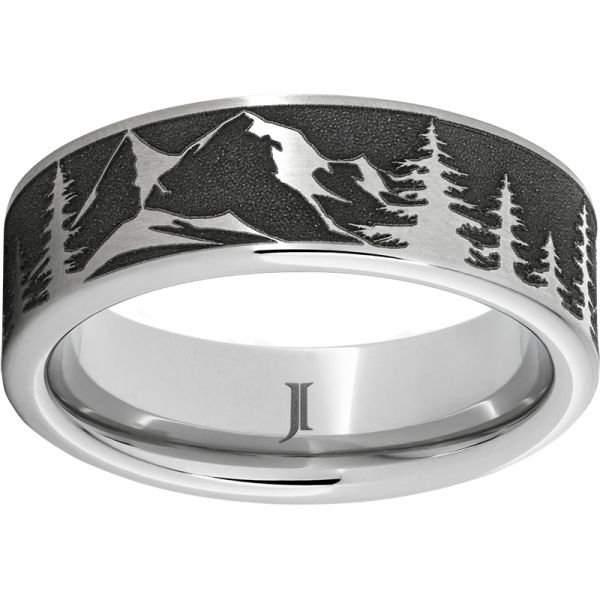 (256) 764-4013Serinium Flat Band with Mountain Pine Scene Laser Engraving